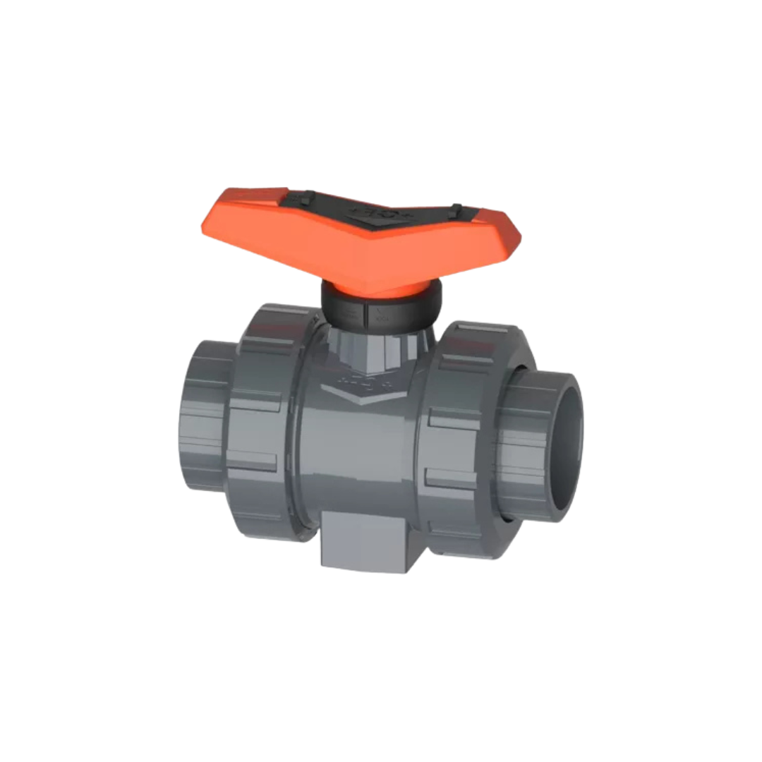 • Materials & Seals: Constructed in durable PVC‑U (also available in PVC‑C, PP‑H, ABS, PVDF), featuring PTFE ball seats and O‑rings in EPDM, FKM or FFKM